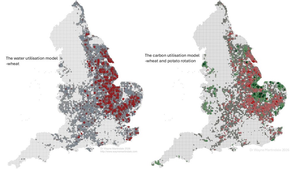 Water is the clearest example. In many regions, water availability is already in deficit for secure crop production. Our recent UK wheat analysis shows that in the highest-intensity areas, more than 0.3 million tonnes of water per square kilometre are transpired by the crop during a single sow-to-harvest cycle. Balancing this demand with available surface water and aquifer supply is becoming tighter every year.
