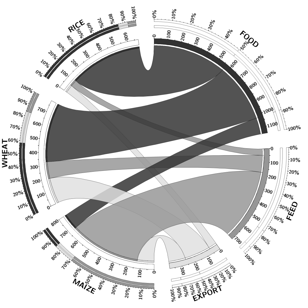 By combining data with fresh thinking, we uncover new, practical ways to build resilience in food supply. For example, our synteny diagrams map how global agri-commodities flow into processing, feed, and food — highlighting often-overlooked aspects of the system- volume and percentage into feeds not just food. Synteny methods are typically used for mapping gene similarities but we used it to map supply chains. The synteny approach was developed using the Circos open access API developed by Martin Krzywinski which is among many of their other fantastic graphical communications that push the boundaries of being innovative in the right direction- too the solutions and understanding.